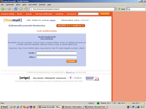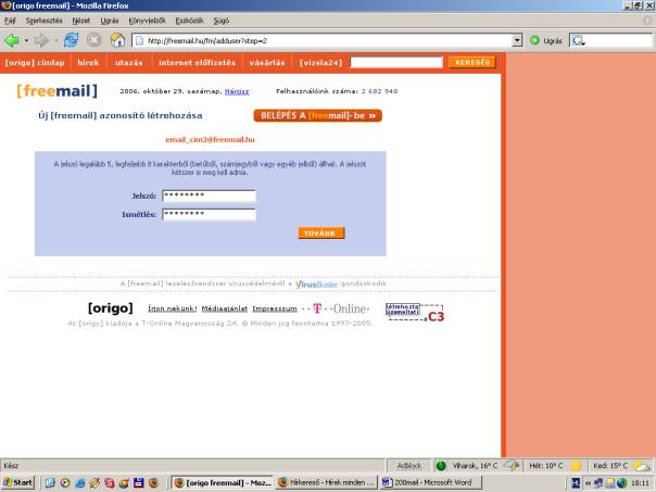 ( Tipp! - A későbbiekben ezt az e-mail címet elegendő havonta felkeresni, hogy a postafiókod megmaradjon. Az ide kapott e-mail –eket olvasás nélkül törölheted, mivel azokat a 200euromailnél egyszerűen és gyorsan elolvashatod. )