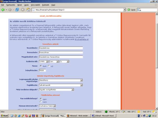 (hogy ne a rendes freemail-es címedre kapd a leveleket)