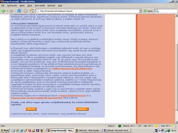 A feltételeket a Tovább gomb megnyomásával kell elfogadni.