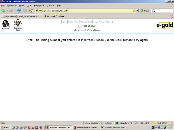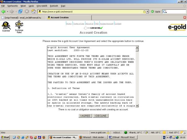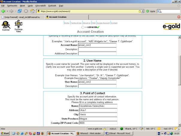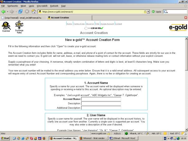 Most következik az E-gold azonosító létrehozása, hogy legyen honnan hazautalni a pénzt.