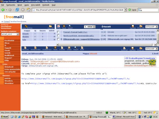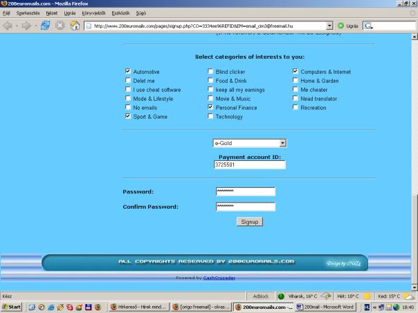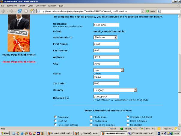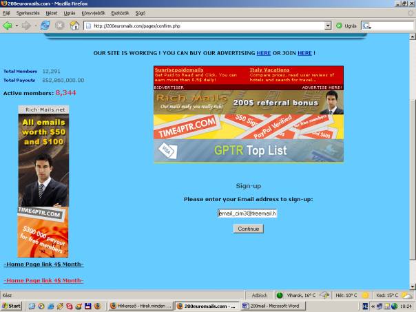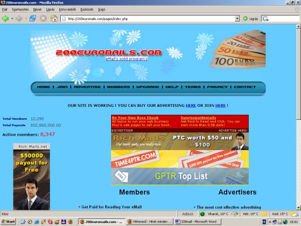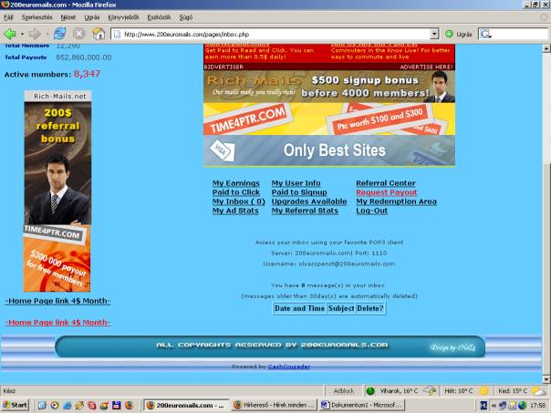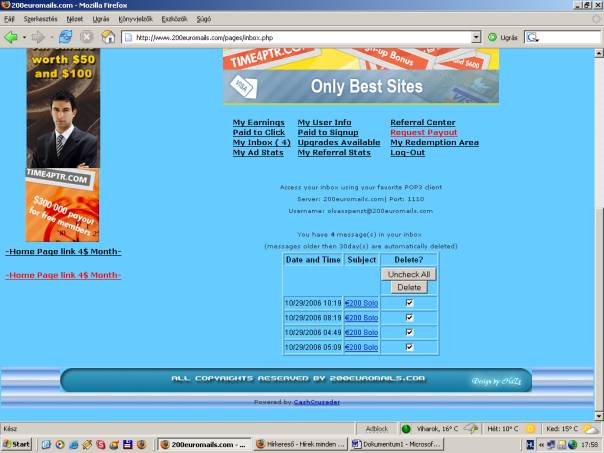Pl: ha a www.200euromail.com – nál alád regisztrál valaki akkor: