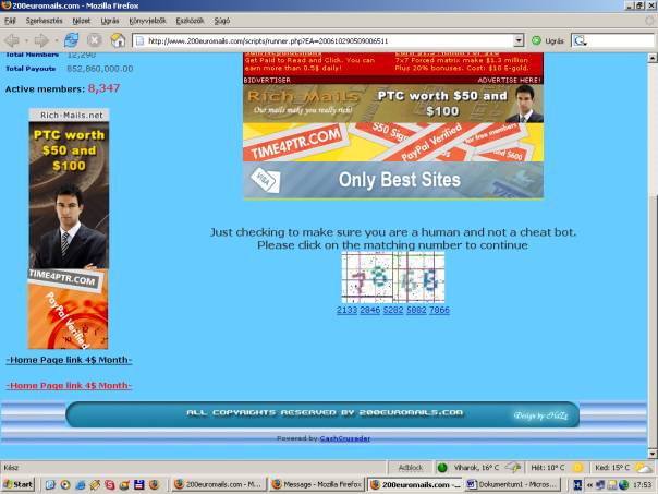 A kattintás után leellenőrzi a rendszer, hogy tényleg ember ül-e a monitor előtt, nem egy ügyes program gyűjtögeti nekünk a pénzt. A megfelelő számokat tartalmazó linkre kell kattintani.